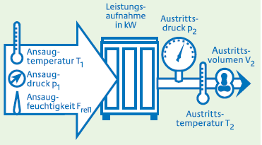 Volumenstrom - Massenstrom - Strömungsgeschwindigkeit Um eine Vergleichbarkeit zu erhalten, rechnet man den Luftvolumenstrom bei Betriebsbedingungen in den Volumenstrom um, den die Luft hätte, wenn ihre Dichte der Luftdichte bei physikalischen Normbedingungen oder bei Umgebungsbedingungen entspräche. Praxisrelevanter ist die Angabe bei Umgebungsbedingungen, da diese einen Aufschluss über die Arbeitsfähigkeit des Luftstroms gibt. Schließlich kann sich die Druckluft im Pneumatikwerkzeug wieder bis auf Umgebungsbedingungen entspannen. Für diese Umrechnung ist die kontinuierliche Ermittlung des Umgebungszustandes notwendig, was zusätzlichen Mess- und Automatisierungsaufwand bedeutet. Bei Volumenstrommessungen zur innerbetrieblichen Abrechnung oder zum Planen einer neuen Kompressorstation wir oft vereinfachend auf die durchschnittlichen Druck- und Temperaturbedingungen am Aufstellungsort zurückgegriffen. Unerlässlich ist jedoch in den meisten Fällen eine gleichzeitige Messung des Betriebsdruckes und der Betriebstemperatur an der Messstelle, da diese in der Regel stärker schwanken. |