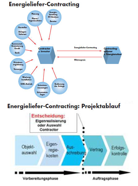 beratenden Ingenieurs 1. Grundlagen: Zieldefinition und Projektentwicklung; Ungeachtet der Frage, ob eine Sanierungsmaßnahme konventionell oder als Contracting-Maßnahme ausgeführt wird, sind das Projektziel und die damit verbundenen Aufgabenstellungen exakt zu definieren. Je nach Intention des Auftraggebers (private Investoren, öffentliche Bauherren, etc.) sind dessen grundsätzliche Unternehmensstrategie, Liquiditätsüberlegungen oder versorgungs- und regionalwirtschaftliche Aspekte zu berücksichtigen. 2. Systemanalyse: Gewerkeübergreifendes Energiekonzept; Nur ein Energiekonzept, das Gebäude, technische Gebäudeausrüstung und Energieversorgung über alle Gewerke hinweg betrachtet, ist zielführend. Auf diese Weise ist gewährleistet, dass Teilsanierungen zukünftige Maßnahmen nicht verbauen. Ein Energiekonzept muss bei bestehenden Gebäuden auch ein Sanierungskonzept mit allen die Funktion und Sicherheit erhaltenden Maßnahmen sein. Neben der Bestandsaufnahme und der Ist-Analyse bei bestehenden Bauten gehört zu den Leistungen des beratenden Ingenieurs die Erarbeitung und Bewertung von Einspar- und Sanierungsmaßnahmen sowie von Versorgungsvarianten. 3. Beratung: Entscheidung Eigenregie/Contracting; Als Basisvariante für die Wirtschaftlichkeit sollte immer die Eigenregie mit dem Contracting verglichen werden. Das von neutraler Seite erarbeitete Energiekonzept stellt eine sehr gute Grundlage für die Entscheidung zwischen einer konventionellen, eigenfinanzierten Lösung und einem Contracting-Projekt dar. Bewertungskriterien sind das Know-how und die Betreiber-Kompetenz des Auftraggebers, die Liquidität des Auftraggebers und die interne Strategie zu Outsourcing und Insourcing. Fällt die Entscheidung für eine konventionelle Projektbearbeitung, sind sämtliche Vorarbeiten des beratenden Ingenieurs nutzbar. Er wird dann meist auch Planungs- und Beratungstätigkeiten anbieten, da er über das notwendige Projektwissen verfügt. Ist die Umsetzung des Contracting- Projektes sinnvoll, stellt sich der weitere Projektverlauf wie folgt dar: 4. Ausschreibung: Suche des geeigneten Contracting-Anbieters; In dieser Phase erfolgt die Erstellung der eigentlichen Ausschreibung für die Contracting-Maßnahme gemäß den öffentlichen Vergaberegeln. Im Rahmen der Ausschreibung formuliert der beratende Ingenieur den Leistungsumfang und die technischen Mindestanforderungen hinsichtlich der Anlagenkonzeption, der einzuhaltenden Garantiewerte, der Ausstattungsmerkmale sowie der Ausführungsqualitäten. Auf diese Weise wird die Vergleichbarkeit der Angebote hergestellt. Neben den technischen Spezifikationen werden in die Ausschreibung auch die vertraglichen Regelungen aufgenommen, die durch einen Rechtsberater zu formulieren sind. 5. Treuhänderfunktion: Angebotswertung und Vergabe; In dieser Phase erfolgt die neutrale Angebotswertung und Vergabe. Die vorliegenden Haupt- und Nebenangebote werden auf Übereinstimmung mit der Ausschreibung geprüft. Die wirtschaftliche Bewertung von Contracting-Angeboten erfordert eine Kostenbetrachtung über den gesamten Lebenszyklus. Hierdurch ist auch ein Wirtschaftlichkeitsvergleich mit der Option „Eigenregie“ möglich. Als Ergebnis der Angebotswertung erstellt der beratende Ingenieur einen Vergabevorschlag und diskutiert diesen mit den Entscheidungsträgern. Schließlich führt er treuhänderisch die Vertragsverhandlungen und unterstützt den Auftraggeber bei der Ausgestaltung der Verträge. 6. Betreuung der Baumaßnahme: Überwachung und Erfolgskontrolle; Während der Durchführung der eigentlichen Baumaßnahmen durch den Contractor ergeben sich für den beratenden Ingenieur wichtige Aufgaben: Aufgrund der detaillierten Projektkenntnis sichert seine Mitwirkung bei der Erstellung des Terminplanes den reibungslosen Ablauf. Ebenso gewährleistet die Prüfung der Planung des Auftragnehmers hinsichtlich Vertragskonformität einen reibungslosen Bauablauf. Neben der Überwachung der Bauausführung prüft der beratende Ingenieur die ordnungsgemäße Vertragserfüllung, die Mängelbeseitigung und die durch den Auftragnehmer zu erstellende Dokumentation, damit auch nach Übernahme der Anlagen durch den Auftraggeber am Ende der ertragslaufzeit ein reibungsloser Betrieb gewährleistet ist. 7. Betriebsphase: